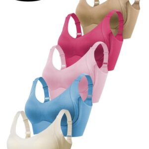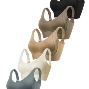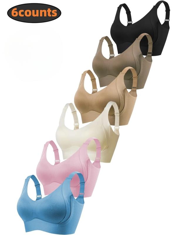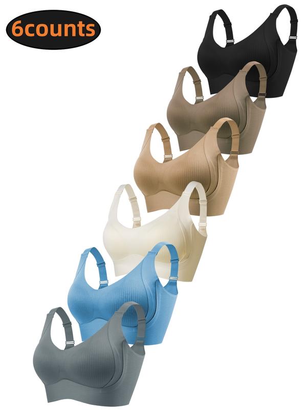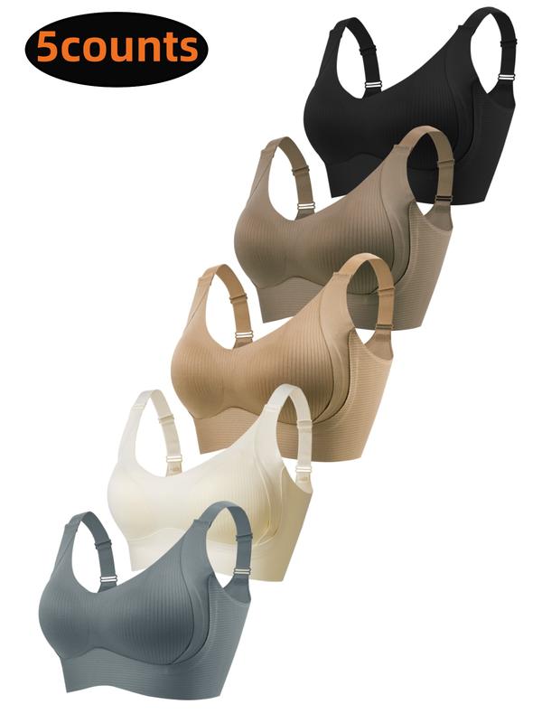5/6Pack Solid Color Push Up Wireless Bra, Comfortable Breathable Lingerie For Everyday Wear