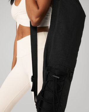 A yoga class necessity. The Yoga Mat Bag is studio-street smart with a soft, adjustable shoulder strap and a top handle for easy carrying. Easily attach your keys with the carabiner hook and store small essentials in exterior grab-and-go mesh storage pockets.