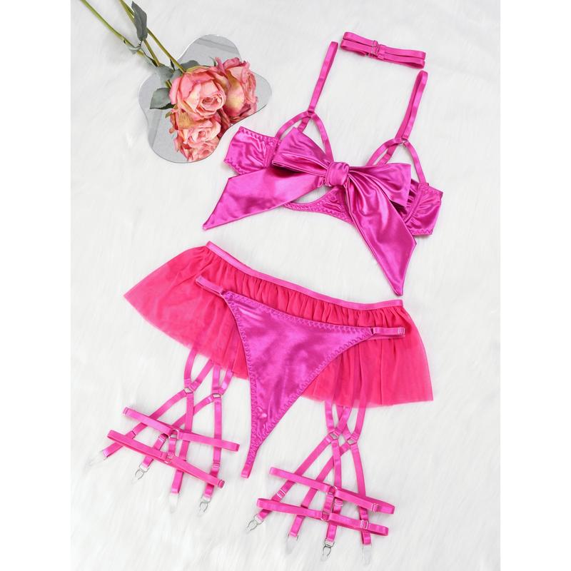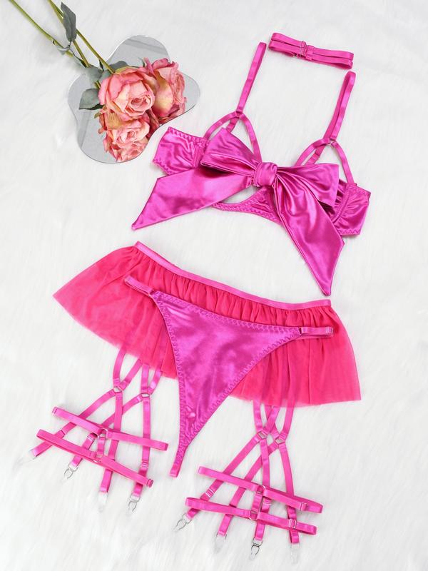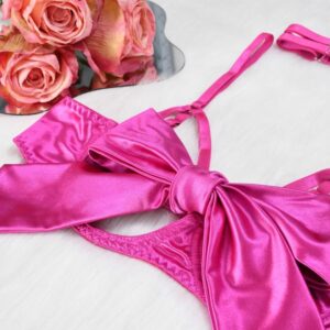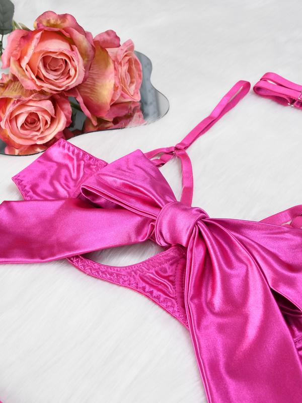 Birthday Gift Whtdress Womenswear Elegant Everyday wear Sleepwear Basic Pink Minimalist Spaghetti Strap Vneck Lingerie Elegance with Bow Detail and Silk Material Piece Style