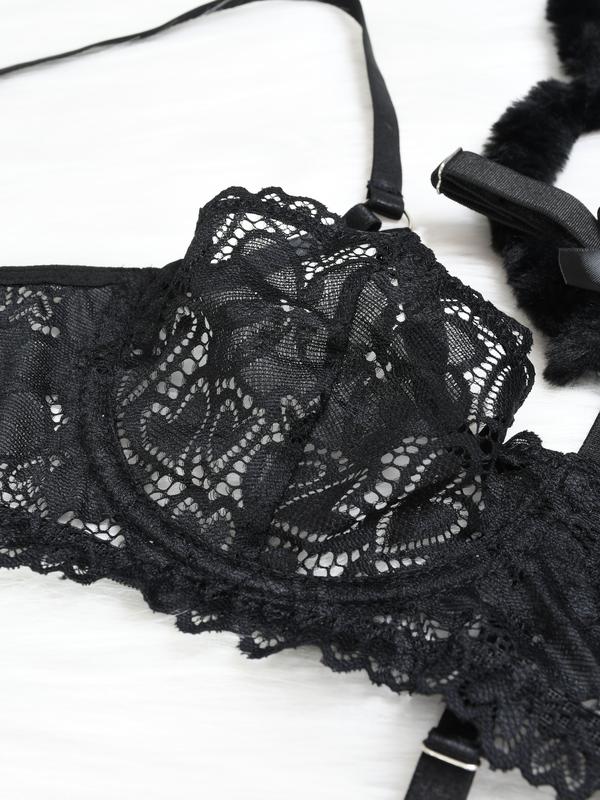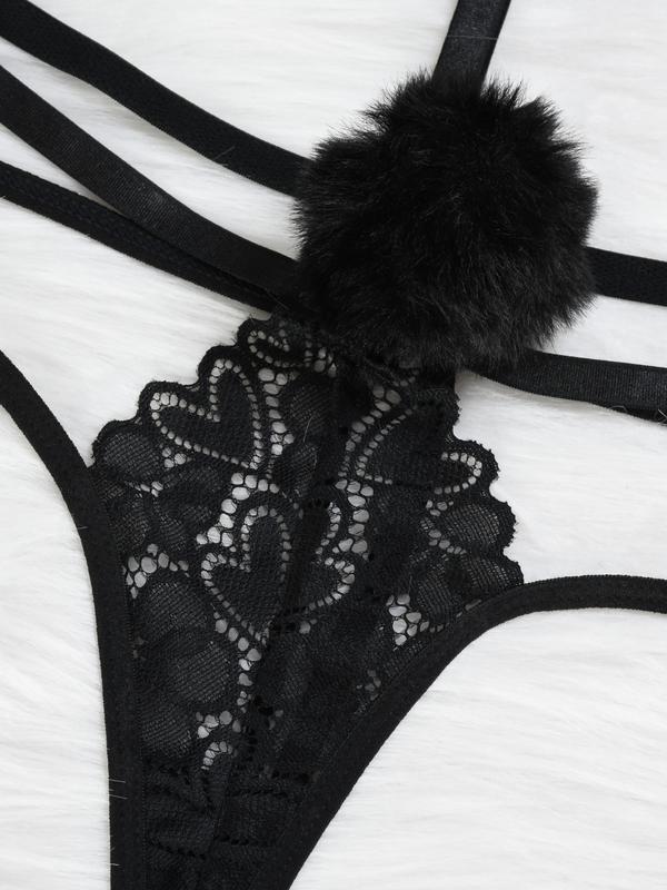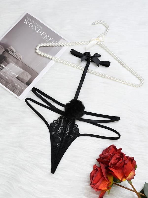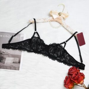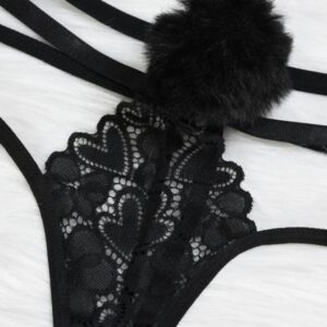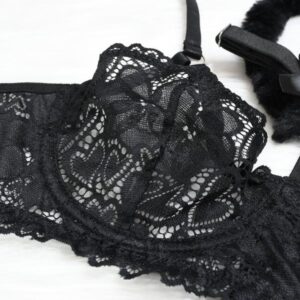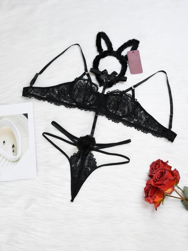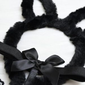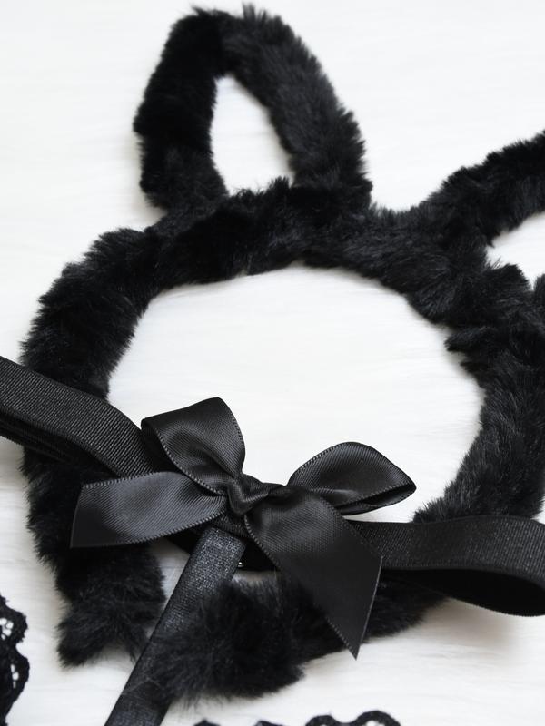Cute Bunny Girl Earrings – Black Lace V Neck, Soft Premium Polyester Blend, Comfortable Women’s Lingerie, Gift for Lover, Elegant & Stylish Breathable