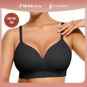【Silky Soft Touch】Crafted from premium, buttery-soft materials, our FeelinGirl bras provide a gentle and soothing feel against your skin, ensuring all-day comfort.The sleek and smooth texture of the fabric glides effortlessly over your body, reducing friction and irritation for a seamless fit.Whether you’re at work or relaxing at home, our soft and silky bras ensure a comfortable and irritation-free experience from morning till night.