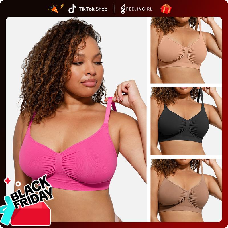 FeelinGirl Women’s Wireless Bra Comfort Bralettes No Underwire Unlined Cami Bra Seamless Tshirt Bras Sports Bra Bralette Basic Comfortable Fit Womenswear Everyday Up to 44DD TikTokShopBlackFriday