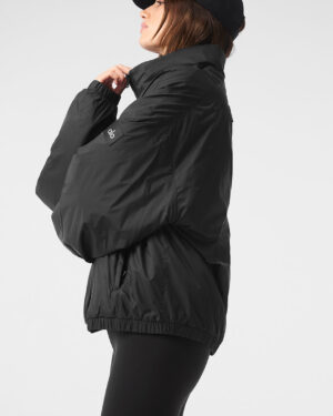 Running to your workout in the rain? Reach for the Latitude Pullover. It??s lightly filled (for a touch of warmth) with functional details like a half-zip collar, zippered side pockets, banded cuffs and a banded hem. Fitwise, it??s generous and oversized. And it??s made from 100 percent nylon??the kind that??s durable, swishy and ready to face the elements.