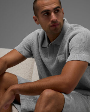 Sports Club Sweater Knit Polo – Athletic Heather Grey