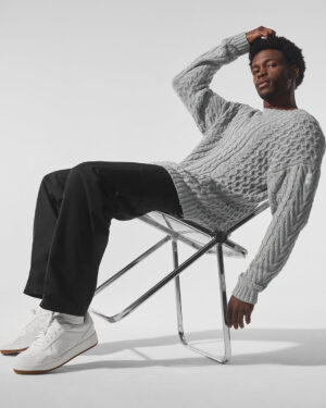 Cable Knit Crew Neck Sweater – Athletic Heather Grey