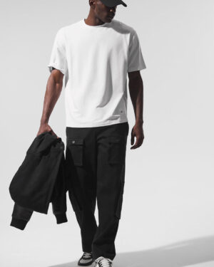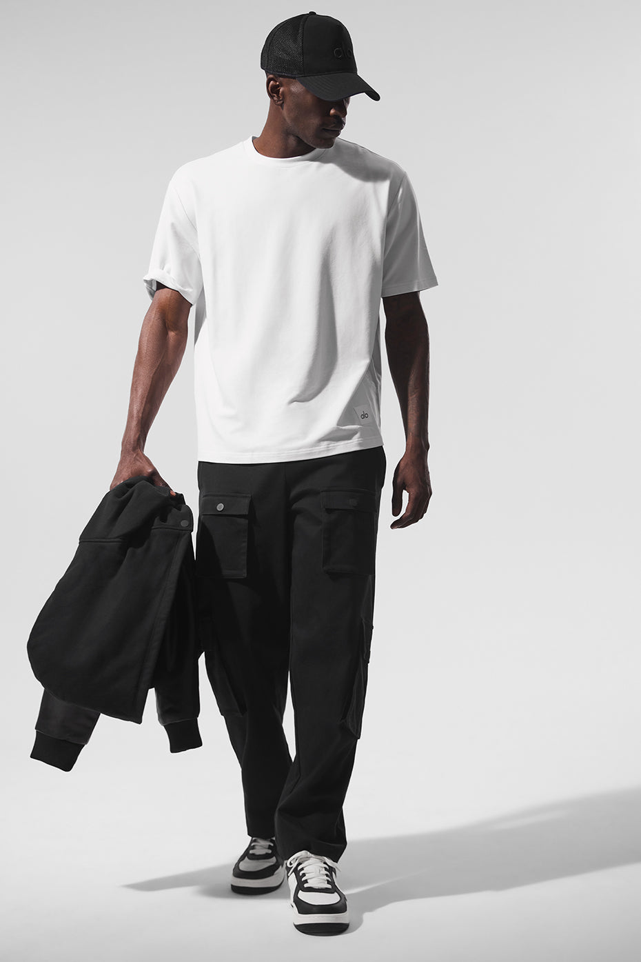 A fresh riff on Y2K style, these pants are made from soft, sturdy, stretch-infused cotton twill. They have four cargo pockets??peep how the lower pockets are slightly offset??with snap closures for stashing spare change or parking stubs. The roomy, straight-leg silhouette has an easy elastic waist with a drawstring. Top it all off with a hoodie and ALO sneakers.