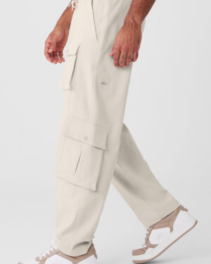 A fresh riff on Y2K style, these pants are made from soft, sturdy, stretch-infused cotton twill. They have four cargo pockets??peep how the lower pockets are slightly offset??with snap closures for stashing spare change or parking stubs. The roomy, straight-leg silhouette has an easy elastic waist with a drawstring. Top it all off with a hoodie and ALO sneakers.