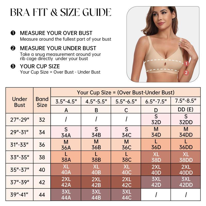 【Buttery Smooth Fabric】OEAK bralettes for women are crafted from a silky smooth blend of 55% Nylon and 45% Spandex, offering a lightweight and comfortable feel like Skin.You can wear it all day without worrying about leaving indentations.The push up bra comes in a variety of sizes, from S to 3XL, S(32D,32DD,34A,34B,34C);M(34D,34DD,36A,36B,36C);L(36D,36DD,38A,38B,38C);XL(38D,38DD,40A,40B,40C);2XL(40D,40DD,42A,42B,42C); 3XL (42D,42DD,44A,44B,44C).