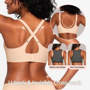 【U-back & Invisible Cross-back Straps】 The U-back wearing is comfortable and unrestricted, ideal for everyday wear like traveling, working, and lounging at home.OEAK seamless bras for women can be used as sleep bras, t-shirt bras, yoga bra, light sport bras and casual everyday wear.The Cross-back style enhances support and lift, suitable for running, working out, and cycling.OEAK seamless bra will go well with any outfit, such as a t-shirts, blouses, tank tops, dresses, etc.