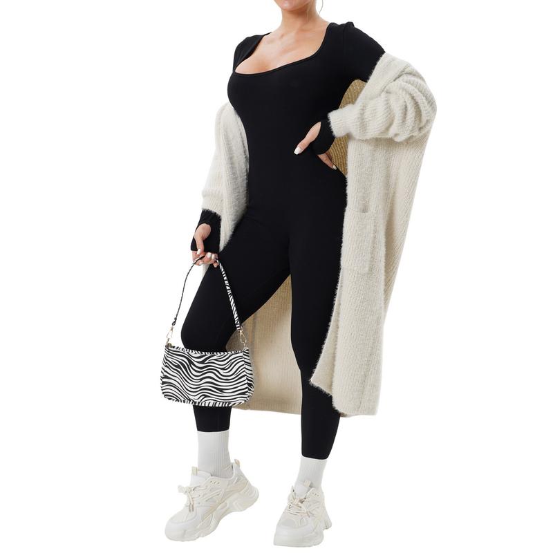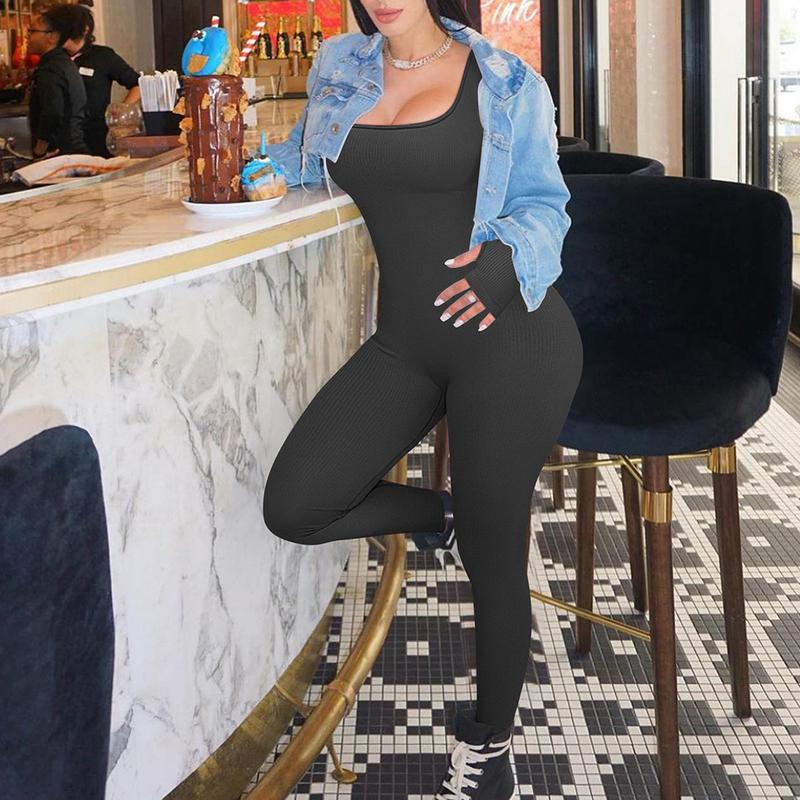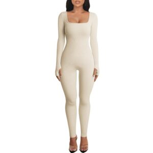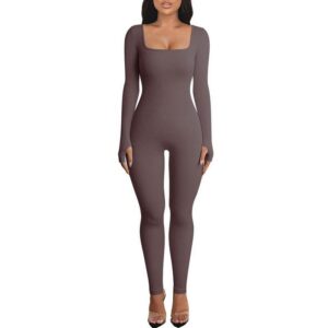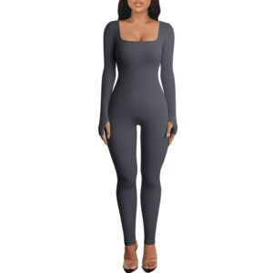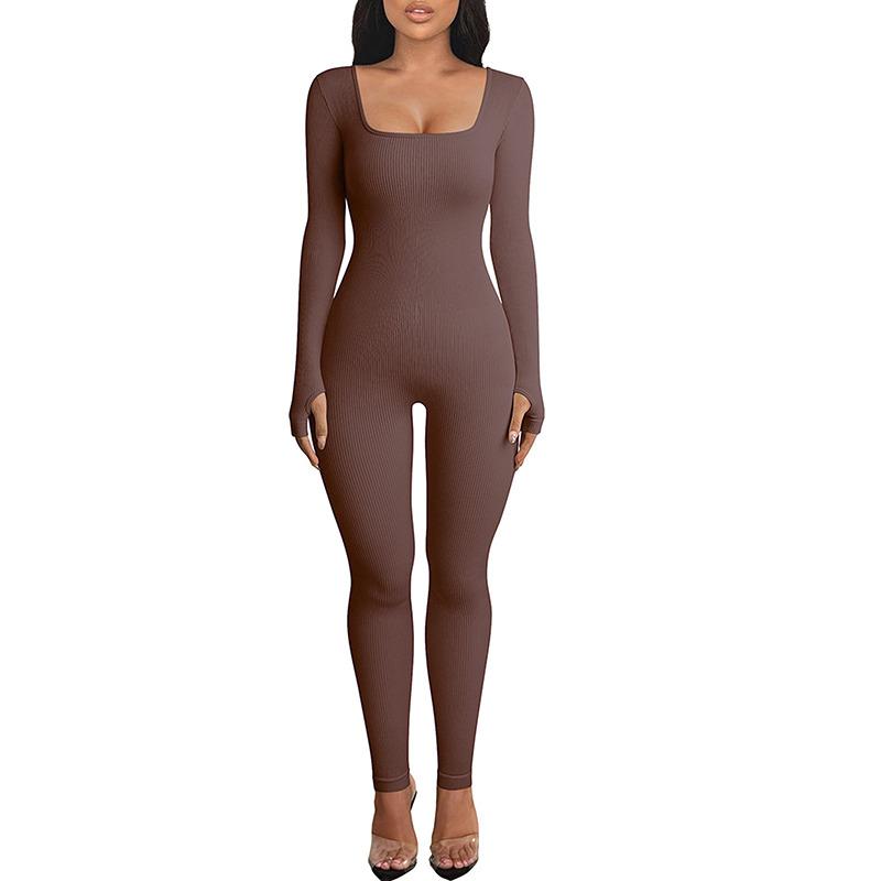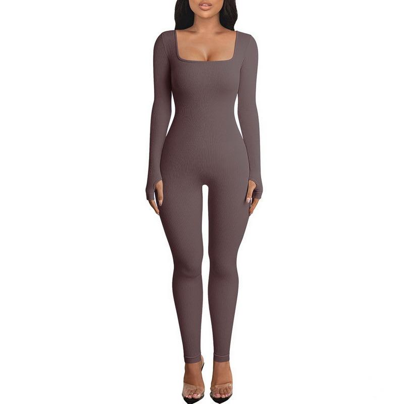 Features:Women’s Yoga Jumpsuit Square Neck Long Sleeve Solid Color Training Fitness Casual Dancing Pants