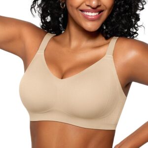 Soft and Comfortable Bra: Our seamless bras for women no underwire are crafted from buttery-soft, breathable fabric that feels BareSmooth against your skin.The wire-free design offers unbeatable comfort, while the high-stretch material gently embraces your curves.Lightweight and non-restrictive, it’s ideal for all-day wear, whether you’re working or relaxing