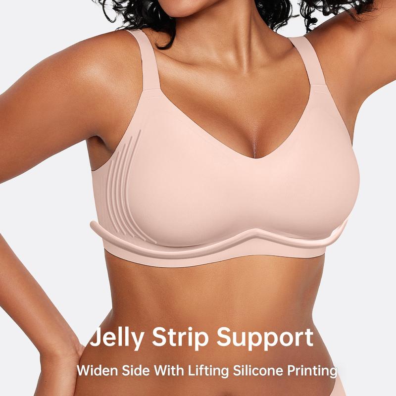 Soft Support Wireless Bra: This full coverage push up bra features revolutionary jelly strip technology that enhances comfort and provides 360° support, ensuring a perfect fit and freedom of movement.The 3D molded cups seamlessly fit a variety of bust shapes, offering a natural lift while making the bust feel firmer and fuller.Breathable semi-fixed pads prevent shifting and slipping, allowing for easy adjustment after washing