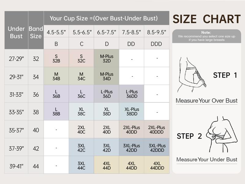 Sexy V Neck Bras for Women: The V-neck and V-shaped hem design enhance your confidence and style, making these comfort bras perfect for both younger and older women.Available in sizes S (32B,32C,34A), M (32D,34B,34C,36A), L (34D,36B,36C,38A), XL (36D,38B,38C,40A), 2XL (38D,40B,40C,42A), 3XL (40D,42B,42C,44A), and 4XL (42D,44B,44C).Our bralettes for women are designed to fit most body types