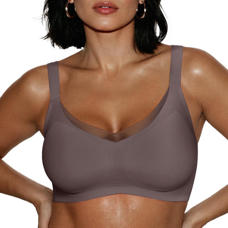 Sexy V Neck Bras for Women – The crossover bra is decorated with delicate criss-cross mesh detail which adds a touch of feminine elegance to the front side, making it truly flattering and charming in its aesthetic appeal.The deep V neck design accentuates and enhances your natural curves beautifully.