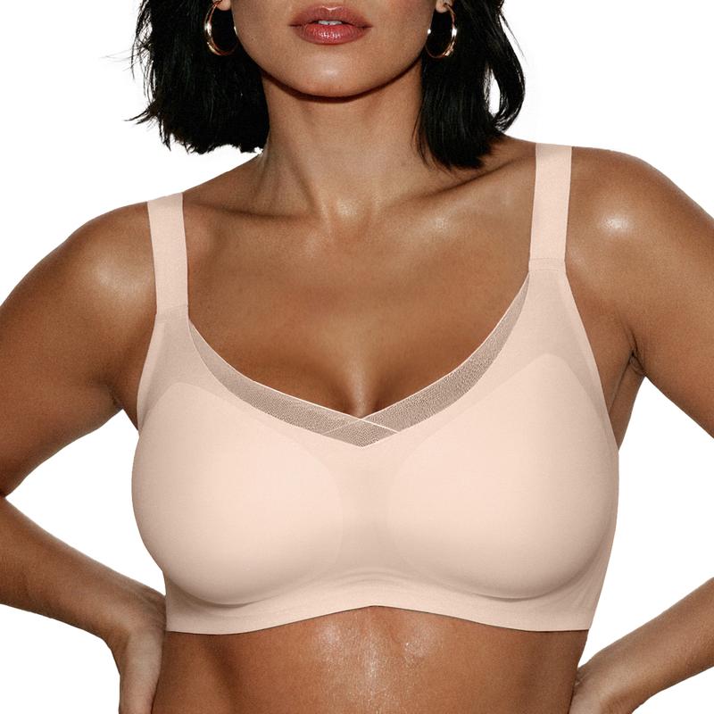 Wireless Bras with Support and Lift – Our wirefree bras feature a W-shaped Jelly Strip and Supportive molded cups around your breasts, giving a nice shape and adequate support for daily life.This comfort bra without underwire means no annoying wire stabbing you in the side, ensuring a buttery soft feeling all day long.