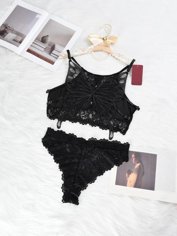 Silvina’s Day Black Butterfly Lace 2pcs Sleepwear Set