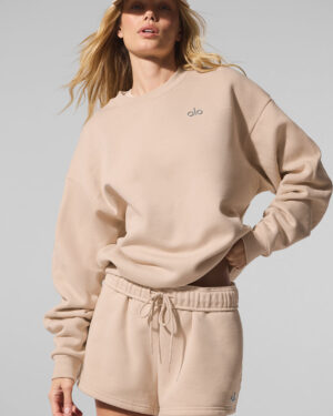 This best seller is cozy, comfortable, cute and done in classic neutrals and on-trend colors??each finished with a chrome ALO logo. It has a classic crewneck, ribbed cuffs and hem, and a laid-back dropped-shoulder fit. It??s made from midweight French terry that??s smooth on the outside and fleecy on the inside with the perfect drape. Pair with the Accolade sweatpants to make a matching set??and get one for your bestie, sibling, or partner, if you??re into that. Find your fit and see all the ways to style it.