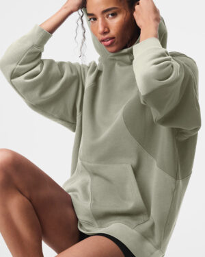 Smile and wave. Crafted from the same soft on the outside, fleecy on the inside French terry fabric as our best-selling Accolade essentials, this oversized hoodie turns heads and keeps you cozy from studio to street. Done in a neutral palette that looks fresh in every season, and finished with a seamed wave pattern that looks even better with the matching sweatpants.