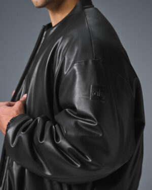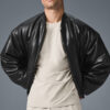 Find your edge in this elevated bomber jacket. It??s made with a luxe faux leather that??s smooth like butter, and it??s lightly filled for a puffed-out silhouette without a bulky feel. It??s heavy enough to keep you warm in cooler temps, but light enough to layer over warm knits without overheating.