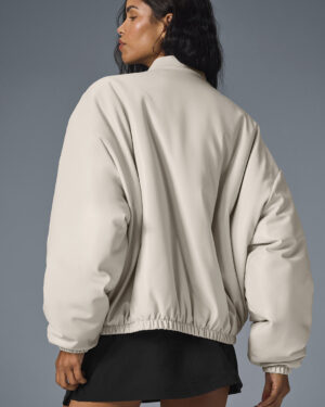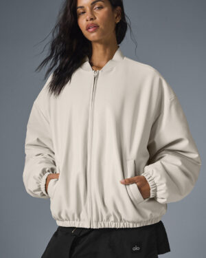 Find your edge in this elevated bomber jacket. It??s made with a luxe faux leather that??s smooth like butter, and it??s lightly filled for a puffed-out silhouette without a bulky feel. It??s heavy enough to keep you warm in cooler temps, but light enough to layer over warm knits without overheating.