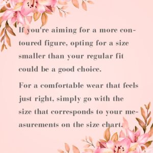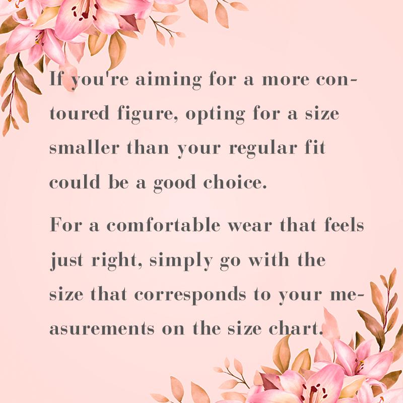 If you’re aiming for a more contoured figure, opting for a size smaller than your regular fit could be a good choice.For a comfortable wear that feels just right, simply go with the size that corresponds to your measurements on the size chart.