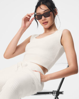 Snuggle season is here! There??s nothing cuter than a short sleeve sweater. This one is designed with a flattering scooped neckline and cap sleeves??perfect for pairing with trousers, a mini, or the matching Snuggle Capsule pants.