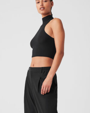 Ribbed Sea Coast Cropped Turtleneck Tank – Black