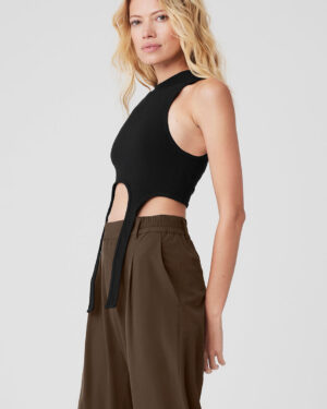 Designed with intentionally hanging garter straps at the hem, the Flaunt Tank brings the edge factor to your outfit. The rest of the silhouette??high neck, sleeveless cut, cropped length??is simple and versatile. And if you??ve never felt our ribbed Wellness fabric, know that it??s soft, stretchy and incredibly flattering on the figure.