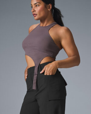 Make any look a little edgier in the Revelation Tank, with its asymmetric silhouette and dangling buckle straps. Done in our Alosoft Ribbed fabric, it has a soft, stretchy feel that conforms to your curves without feeling compressive. And the racerback detail, waist-defining crop, and cute high neck? All the more reasons to add this top to your cart ASAP.