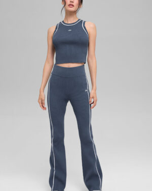 Ribbed Sweater Knit Highline Cropped Tank – Bluestone/White