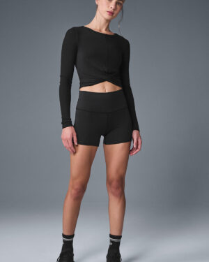 Prepare to walk the walk in the Cover Long Sleeve Top. The cropped slim fit silhouette, sweet front wrap detail and ribbed sleeves make it on-trend and on-point. Layer it over your favorite ALO bra for an easy, studio-to-street transition.