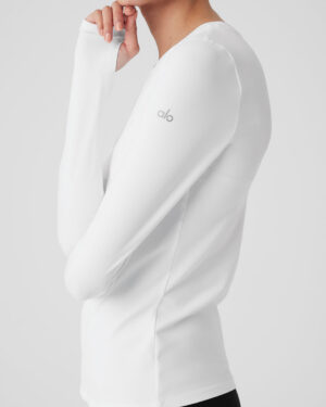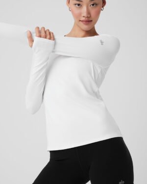 Bring the feels.The Alosoft Finesse Long Sleeve is made with soft performance jersey and has a comfy, relaxed silhouette, so you can stay cozy and on-trend from yoga to lounge. Looks so good layered under jackets.