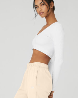 Seamless Ribbed Cropped Serene Long Sleeve – White