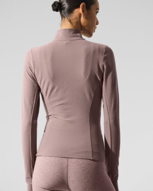 Fitted and ready for making moves. The Alosoft ? Zip Rapid Pullover, made from velvety soft & breathable Alosoft, features invisible side zip pockets and elevated seams that contour the body for a perfect fit. Take it to the pavement with ALO performance leggings.
