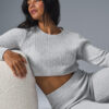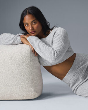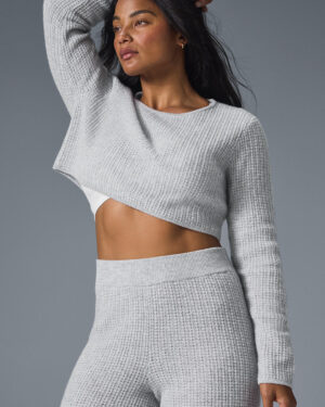 Cashmere Plush Waffle Cropped Long Sleeve – Athletic Heather Grey