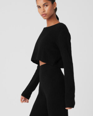 Cashmere Plush Waffle Cropped Long Sleeve – Black
