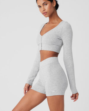 Alolux Cropped Me Time Cardigan – Athletic Heather Grey