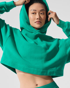A cute and comfy counterpart to your high-waisted favorites, the Bae Hoodie has a relaxed fit, long scrunchable sleeves, ribbed cuffs and a slightly cropped ribbed hem that highlights the natural waist. The pocketless design is streamlined and bulk-free, and the French terry is an absolute pleasure to pull on: smooth on outside and fleecy on the inside.