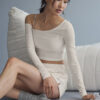 Designed to show a little shoulder, this long-sleeve top nails the balletcore trend. The fabric is incredibly light and super smooth, with lots of stretch so conforms to your body. The cropped length skims the waist??the perfect complement to high-rise trousers, skirts, or sweatpants.