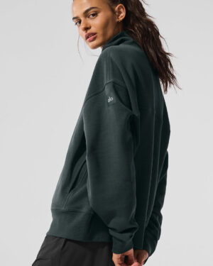 Hazy Mock Neck Pullover – Charcoal Green