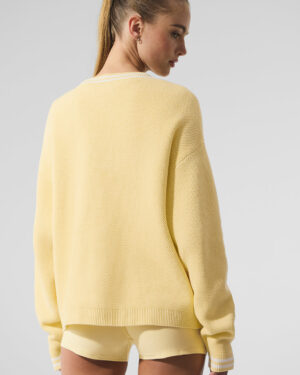 Tennis Club Sweater Knit Cardigan – Warm Butter/White