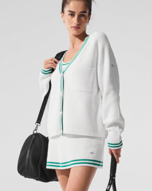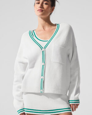 Tennis Club Sweater Knit Cardigan – White/Spruce Green