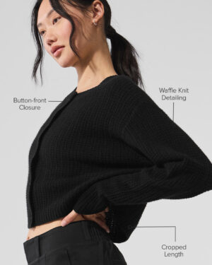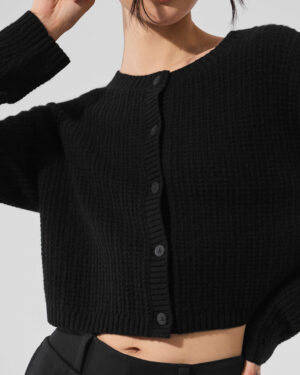 Cashmere Plush Waffle Cardigan – Black