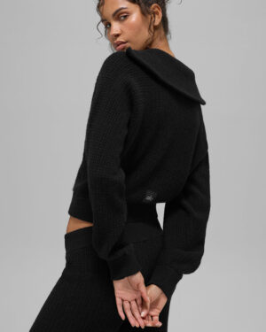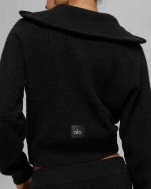 Cashmere Plush Waffle 1/4 Zip Pullover – Black