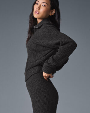 Cashmere Plush Waffle 1/4 Zip Pullover – Dark Heather Grey