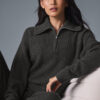 From studio to street, this quarter-zip will be your new go-to. With its soft feel and relaxed fit, it??s no wonder this pullover is one we??ll be wearing all season long. Pair it with the Cashmere Plush Waffle Pant for an elevated take on a cozy outfit.
