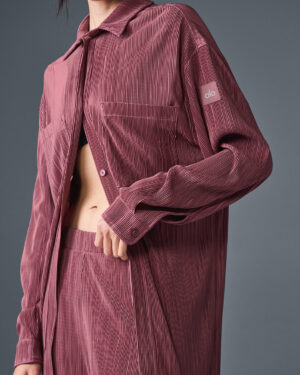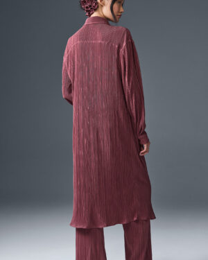 Micro Plisse Shirt Dress – Burgundy Truffle