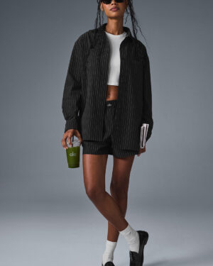 Add this button down to any outfit to instantly level up your look. It??s oversized, slightly boxy, and features a classic collar. The lightweight feel makes it ideal for layering over a sports bra or tank, and the structured fit is buttoned-up enough for the office or a night out. Stripe right and pair it with the matching Pinstripe Daylight Boxer Short.
