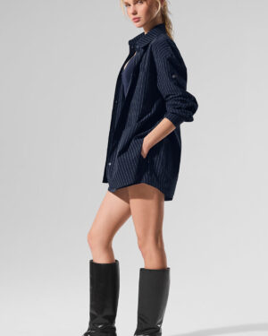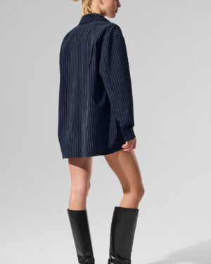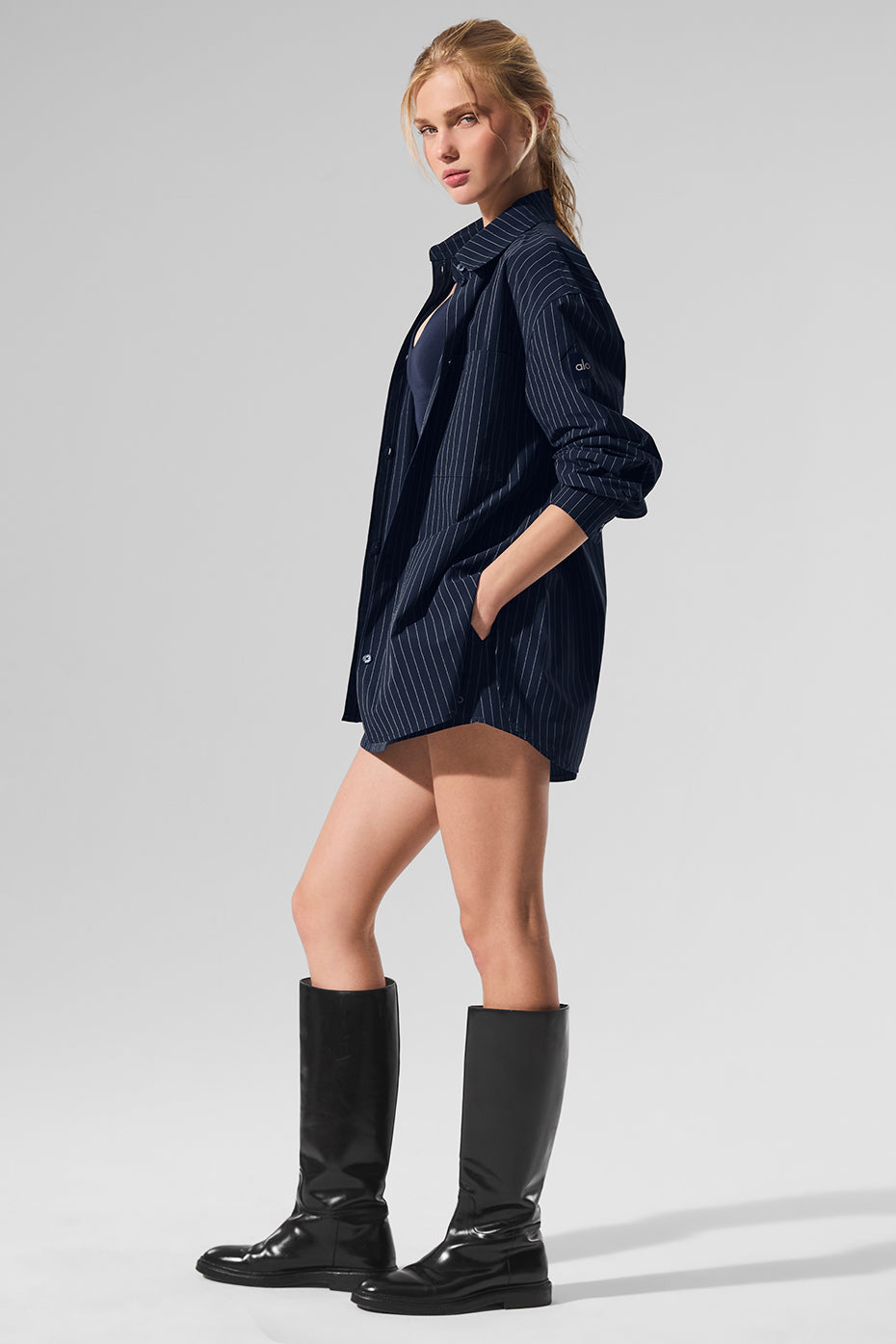Add this button down to any outfit to instantly level up your look. It??s oversized, slightly boxy, and features a classic collar. The lightweight feel makes it ideal for layering over a sports bra or tank, and the structured fit is buttoned-up enough for the office or a night out. Stripe right and pair it with the matching Pinstripe Daylight Boxer Short.