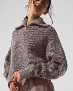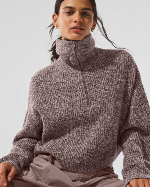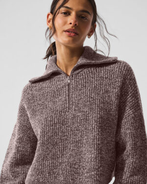 Marl Sweater 1/4 Zip Pullover – Mushroom Marl